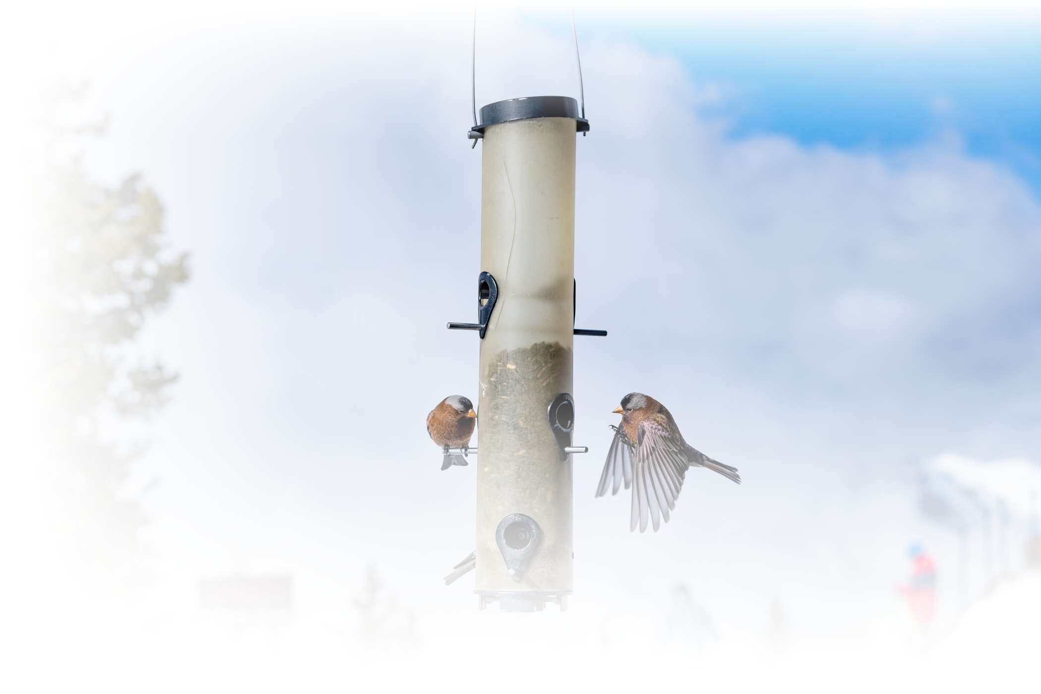 The bird feeders around Alta are one example of the incredible Alta community. Most of the feeders are not maintained by Alta Ski Area, but by skiers and employees who enjoy seeing the feathered friends enjoy a meal in close proximity. Observing them is fascinating, spurring conversation and curiosity. Although slightly difficult to find, these feeders are all placed just off groomed runs at Alta and are possible to see with beginner and intermediate skiing abilities.